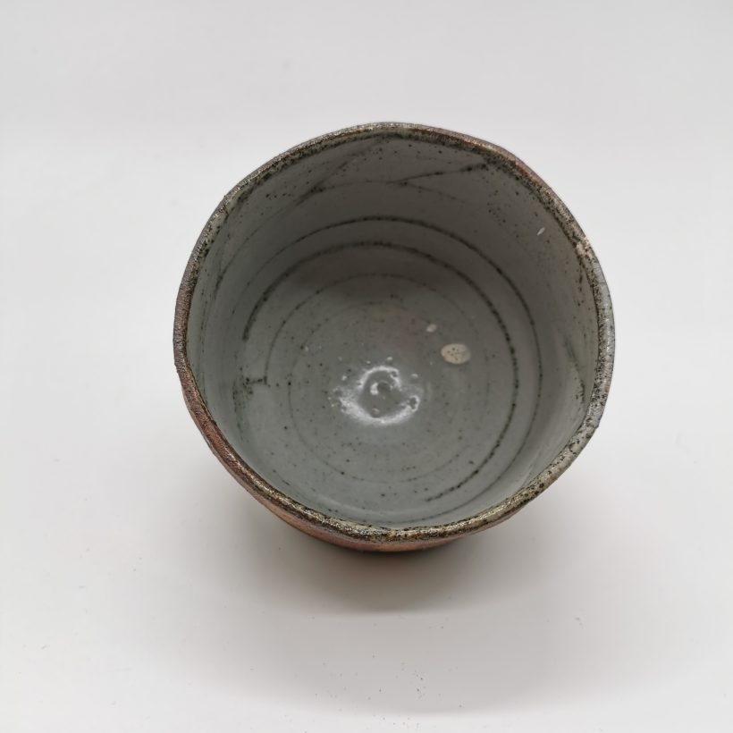 Teemalja matcha-teen valmistukseen. Käsin dreijattu, puupoltettu. Sisäpuoli lasitettu kirkkaalla, kiiltävällä lasitteella. Maljan ulkopinnassa suomalainen villisavilietekoristelu.